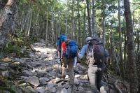 岩がごろごろした急勾配の道を小休止を入れながら進む。