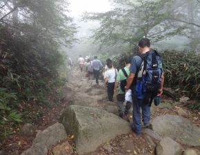 ●三連休の最終日だけあって登山道には本格的な登山客は殆ど見られず、観光客や子供達が多く目についたところであった。その中で我々も半分観光気分での登頂となったが、当方にとって日本百名山完登を目指す上での大きな懸案事項を内容はともあれ何とか果たす。