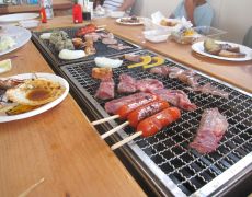 ●「エル・パーク・おおい」での見学の後は、荷捌場へと戻り釣り大会の表彰式を終え、あかぐり海釣公園へと向かいここで昼食となる。豪勢な海鮮バーベキューで疲れた身体とお腹?を癒し、その後は観光バスで旅館に戻り夕方まで休息と取り、夜の行程に備えることとなる。