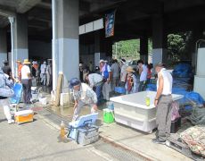 荷捌場にて優勝チーム