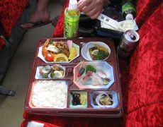 豪華な弁当で夕食