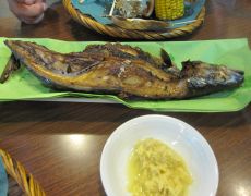 ●ここは地元の魚市場や飲食店など多くのお店が並び、また夏休みの日曜日であったことから多くのお客が訪れていたようだ。ここで海産物のお土産を買い、その後名物の海鮮バーベキューセットと焼き鯖で昼食を取る。なお、ここで買った海産物以外にもお土産として、釣り大会参加賞の釣り竿(新品)天ぷらや、お連れさんらのご好意で釣った鱚なども頂くこととなった。