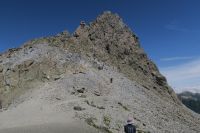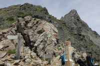 ここでやっと山頂を望む。槍ヶ岳山荘はもうすぐ。