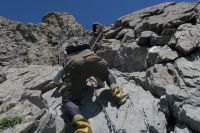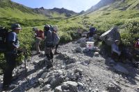 足元を確認しながら進む。この時間登頂客は少なかった。