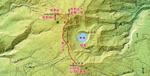 刈田岳山頂駐車場→熊野神社→熊野岳(1,841m)→熊野岳避難小屋→刈田岳山頂駐車場