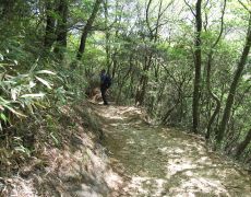 ●一軒茶屋前の六甲最高峰へと向かう道端で昼食を取り、ここからは六甲山系ではメジャーな道である魚屋道(ととやみち)でJR甲南山手駅へと向かう。この道は、当方山歩きを始めた頃に何度となく歩いたことはあるのだが、今回始めてこの道を下ることとなる。午前中とは違いメジャーな道だけに道幅も広く、コースタイムより早いペースとなる。風吹岩や蛙(カエル)岩などの魚屋道のポイントをカメラに収め、予定していた時間前にJR甲南山手駅に到着する。